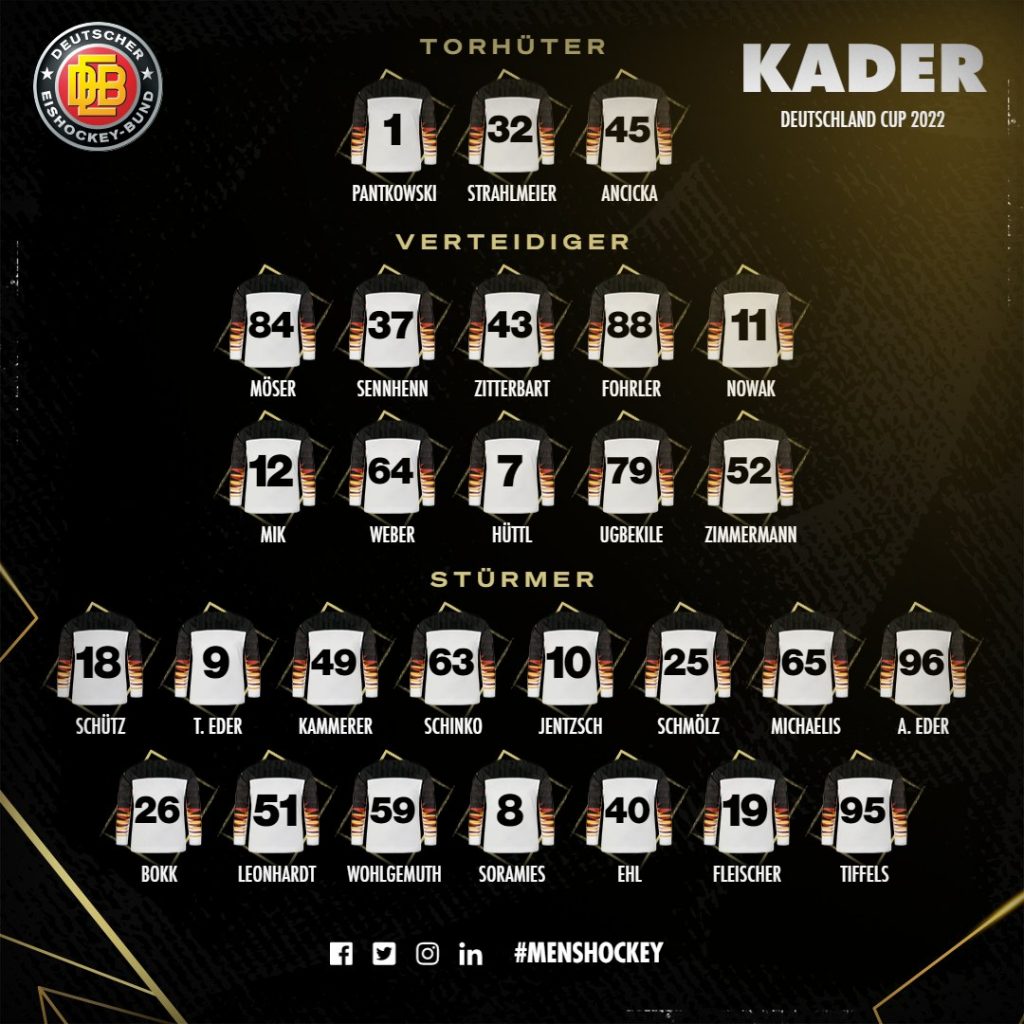 Am Donnerstag, 10. November 2022 (19:45 Uhr, live auf MAGENTA Sport), startet die deutsche Herren-Nationalmannschaft dann in der Abendpartie gegen die Auswahl aus Dänemark. Am Nachmittag eröffnen die Teams aus der Slowakei und Turnierneuling Österreich (16:15 Uhr) den Deutschland Cup 2022. Im weiteren Verlauf des Deutschland Cups trifft das deutsche Team am Samstag, 12. November 2022 (17:30 Uhr, live auf MAGENTA Sport und SPORT1), dann auf Österreich sowie am Sonntag, 13. November 2022 (14:30 Uhr, live auf MAGENTA Sport) auf die Slowaken.