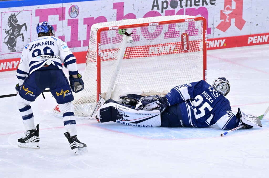 Im letzten Drittel standen beide Goalies rasch wieder im Fokus. Miska klärte großartig gegen Charlie Jahnke und Maciej Rutkowski, Jenike gegen Adrian Klein, Mike Connolly und zweimal Samanski. Dann wurde es in der insgesamt sehr fairen Partie kurzzeitig ruppig. Während ein Foul an Daschner nicht geahndet wurde, erhielt im Gegenzug Fonstad eine Zwei-Minuten-Strafe wegen Stockschlags. In der folgenden Überzahlsituation klärte Miska stark gegen Cornel und nach Ablauf der Strafe gegen den alleine auf ihn zulaufenden Boland. So stand es nach Ende der regulären Spielzeit weiter 2:2.