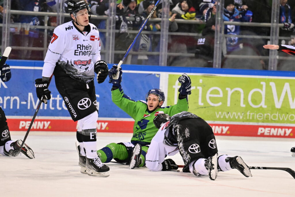 Kölner Haie: Pantkowski (Shilin) – Bailen, Müller Mo, Bast, McIntyre, Olver – Roach, Dietz, Thuresson, Aubry L.-, Kammerer – Sennhenn, Austin, Baptiste, Matsumoto, Ferraro – Glötzl, Proft, Sill, van Calster.